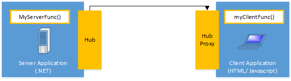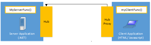 Here The Hub Proxy in Client Side invokes the server side function from Hub.