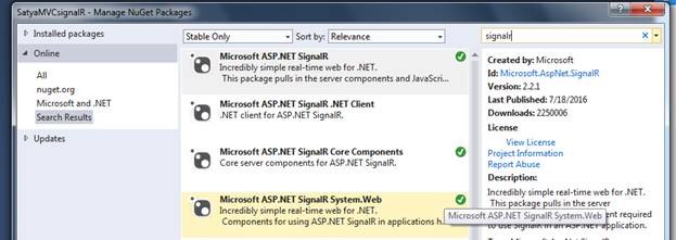 After installation of these three files from NuGet Package manager you can check these signalR DLL files. You can check also Open Web Interface in .NET called  “OWIN” related DLL files which are responsible for sending the contents of a server to currently connected clients.